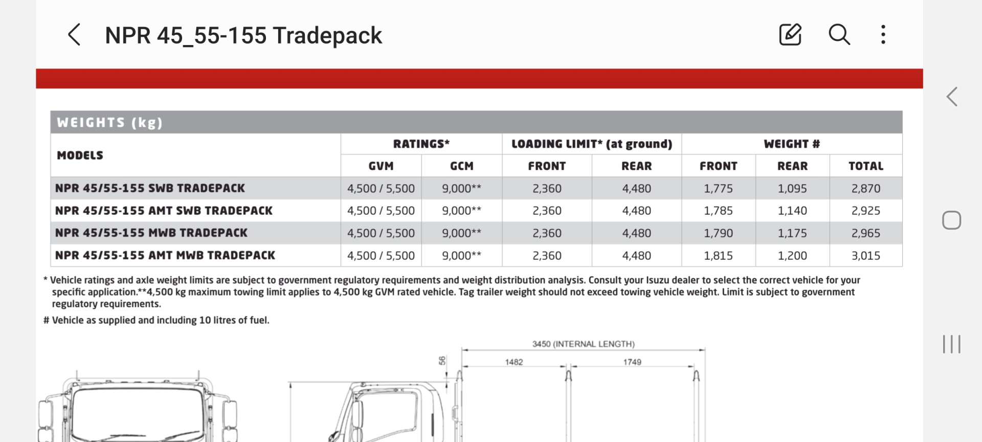 The beauty of what Fridge65 has bought, is that it is the wide cabin version denoted by the P in the nomenclature of NPR, P is wide cabin. Personally I would get the full rated version of that truck, which is 5500kg GVM, then you could have another 1000kg of carrying capacity. Still, its a licence and registration thing.