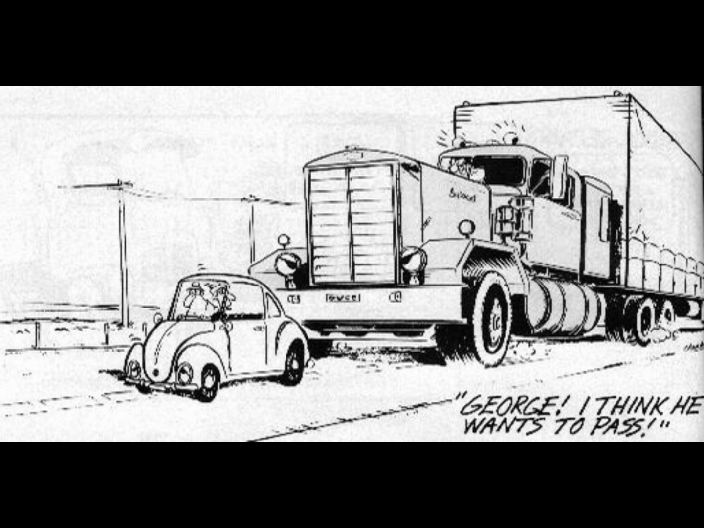 The "Gotta get past the truck. Gotta get past the truck" attitude is prevalent, and some of the overtaking manoeuvres I see are beyond stupid, but once these clowns are ahead they'll then slow to 85km/hr. Why?