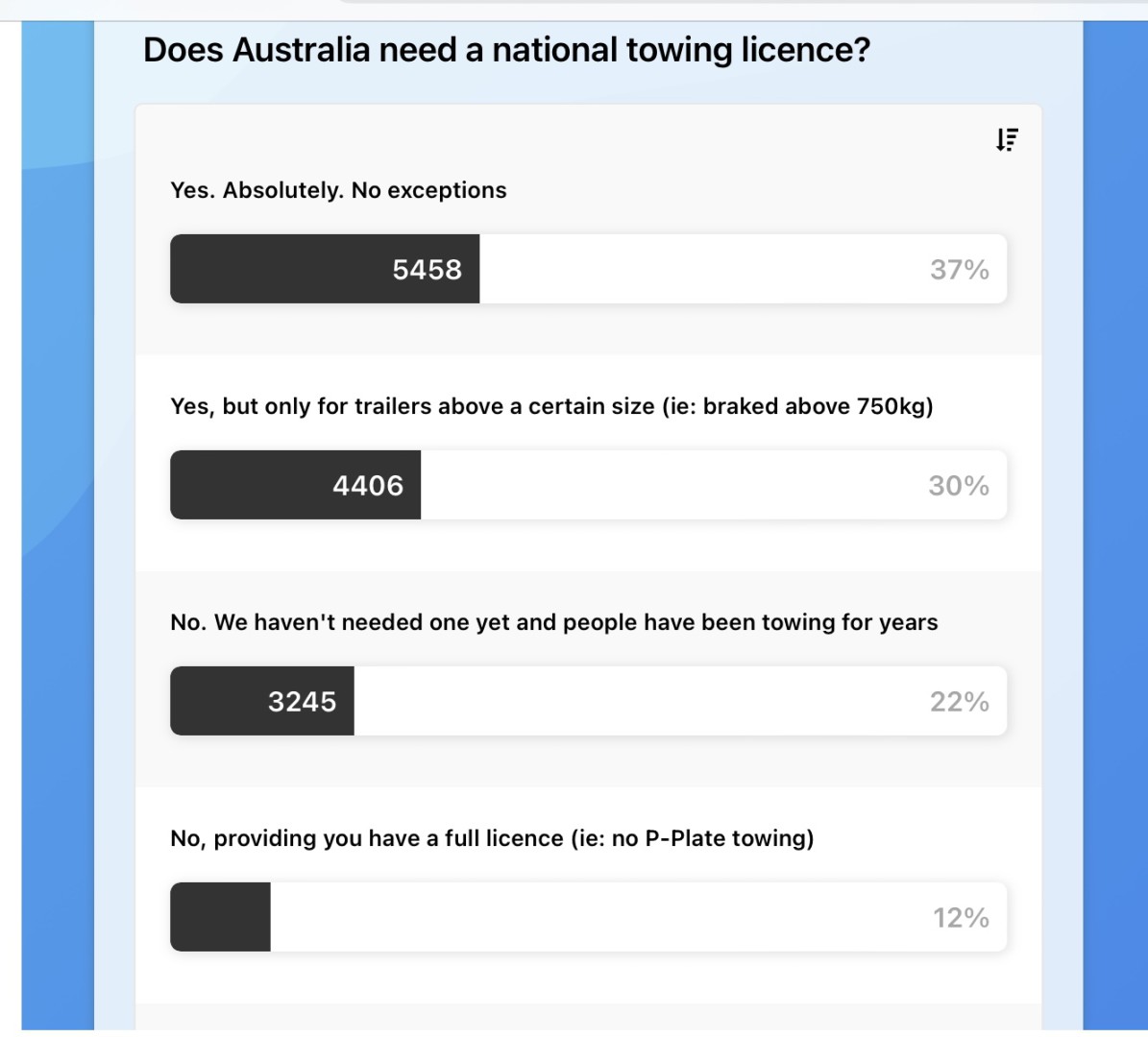 15+ thousand might sound like a lot of people but in reality it is not a spit in the ocean. To change anything requires millions of votes and even then just slightly less than half the population may not agree. Instead of a caravan licence maybe a national towing speed limit of 100 kph?