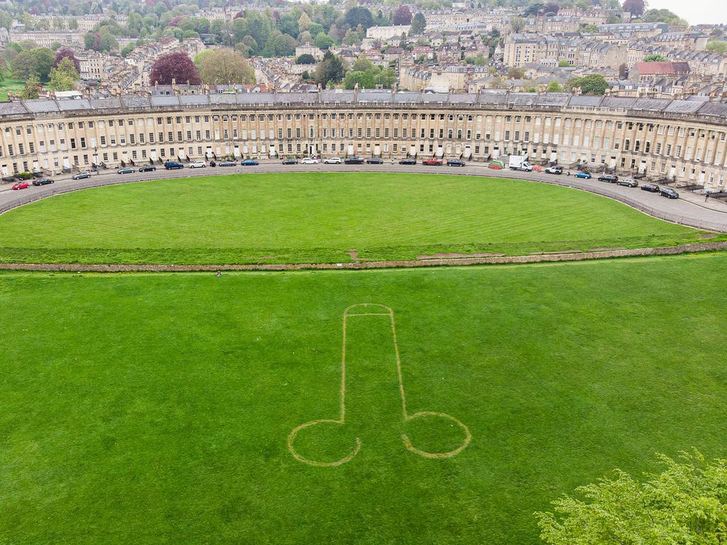 ****y pranksters mowed a giant penis onto the famous grounds of the Royal Crescent in Bath, England, where a significant coronation party is set to be thrown.