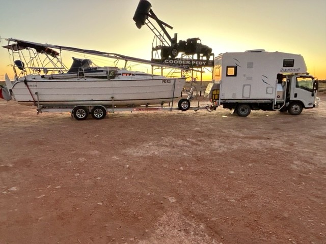 Yep Via Alice, Mount Isa and Townsville as walking part of the Larapinta on the way to the Barrier Reef leaving the camper and yacht in a secure storage yard in Alice. We are coming back via the East Coast to catch up with friends and family there! Dont worry we will pull over if we see you in our rear camera caught behind us! It is a bit outrageous to be dragging about two kitchens, two toilets, four showers, four dining areas, two tvs, beds for 8 people, 3 fridges, 1.6kw of solar and 860ah of batteries, 17kgs of bottled gas and all the rest of the stuff.