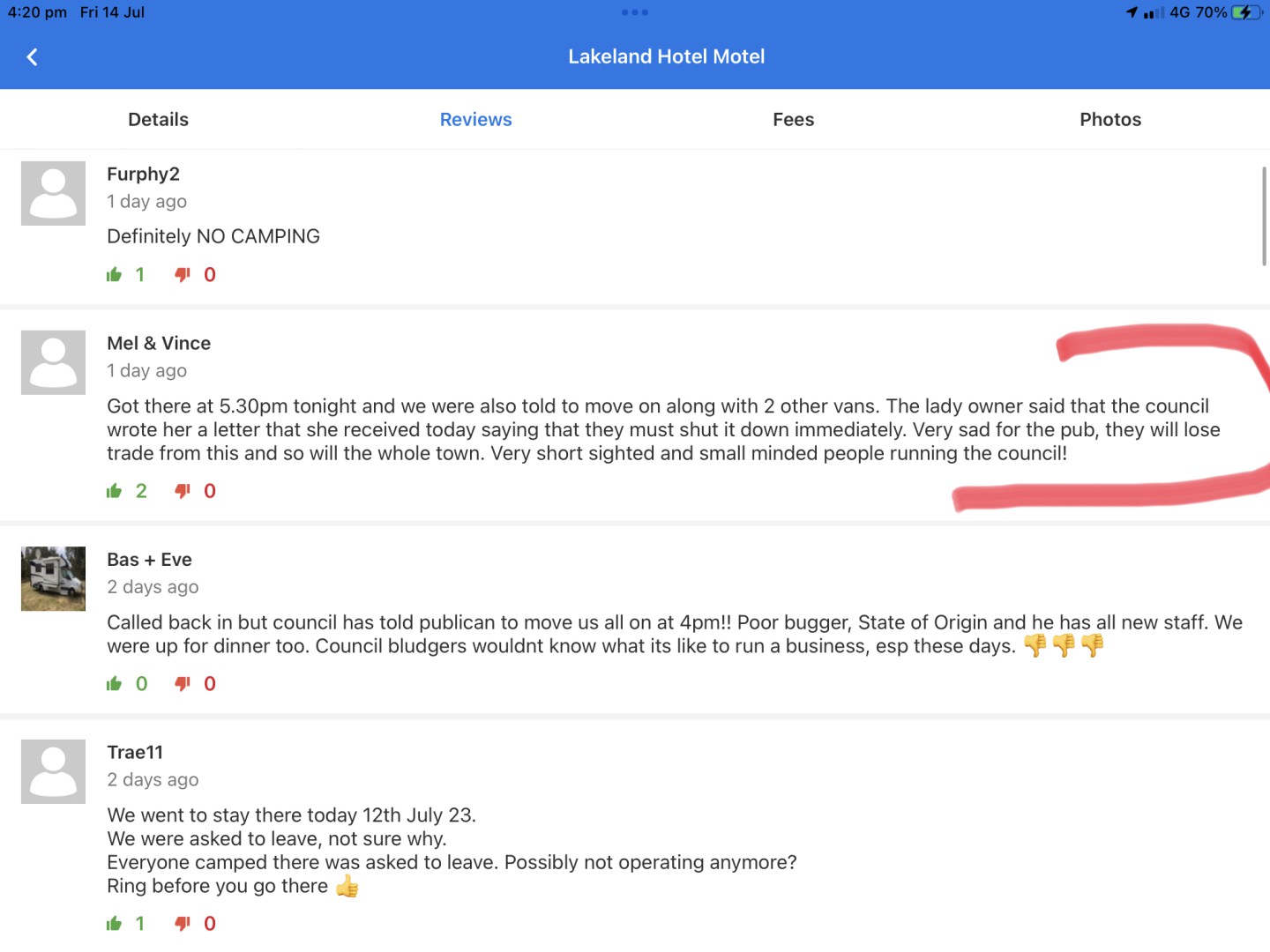 Council ordered the camp associated with the hotel closed immediately at 16:00 yesterday. Publican had to ask everyone leave asap. Travellers turned away at 17:30 with nowhere to go but Cooktown or back to Rifle Creek. Interesting to note the Cook Council who control the Lakeland area are planning to close the Cooktown Racecourse RV site next year eventhough ALL CPs are chockers. Maybe we should start an RV Unfriendly Town page