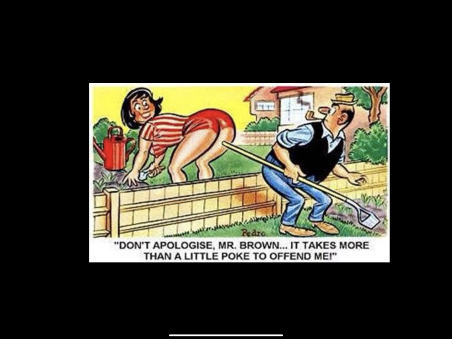 She replies, EYE LEFT TIT BEHIND THE BUSH.