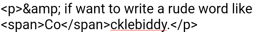 Select half the rude word. Then the easiest is to bold those few letters. Then click the HTML tab & change strong to span.