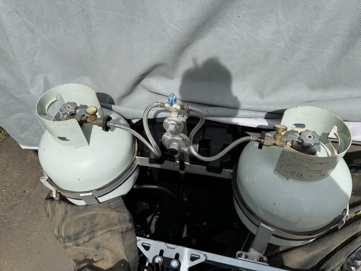 We managed extended periods off grid with 2 x 3.7kg bottles set up much as in you photos. Gas was only used for cooking & the two bottles could last us several months. If you are using gas for space heating and or hot water you'll soon find how long you can last on two 4.5kg bottles & can adjust you time off grid accordingly. Just means you have to refill more often than you have been, which isn't really a big deal. It was for us because so any places have changed to swap & go, who didn't have our size bottles , so we mostly needed to find places to re-fill them.
