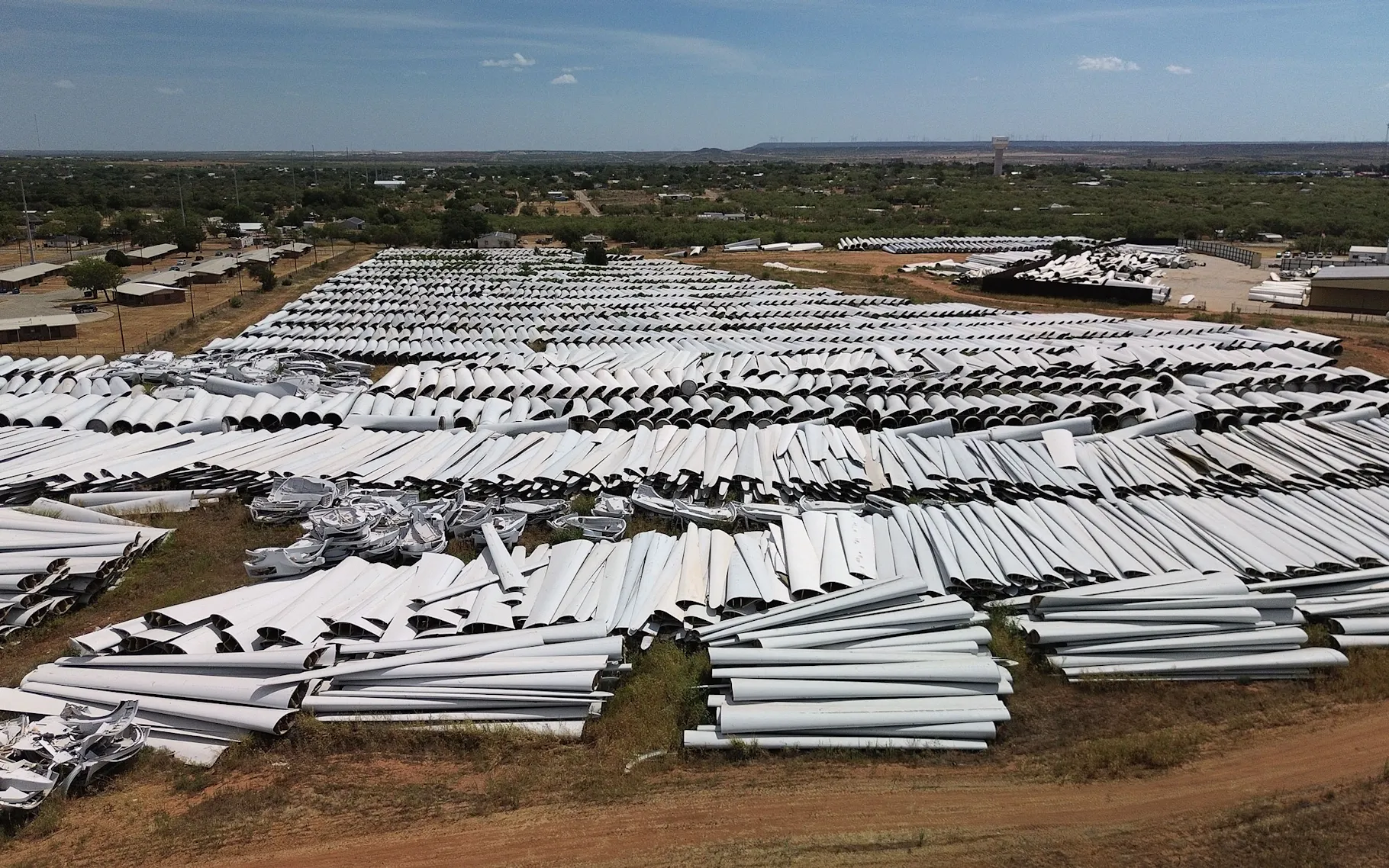 Included is a pic of a Texas storage yard for turbine blades the piles are about 3mtrs high.