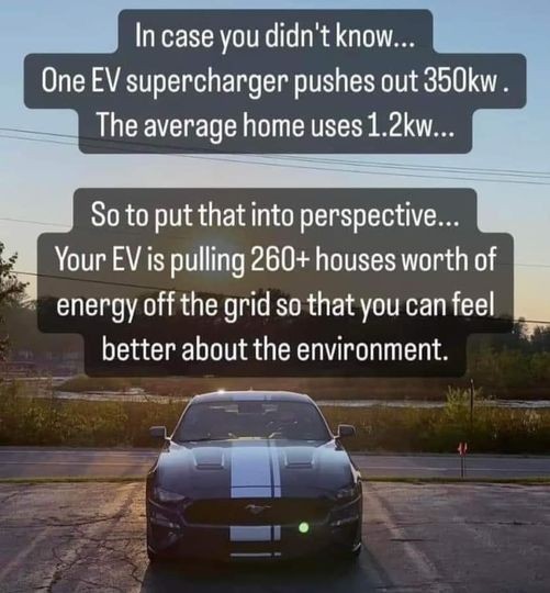 Never mind Gundog, I'll look up the figures. From memory charging six EV cars draws the same amount as 100 houses use per day.