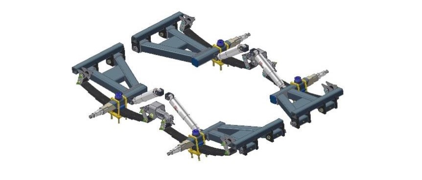 My (old) Kedron has tandem independent load sharing leaf spring suspension with dampers. - A bit of everything !