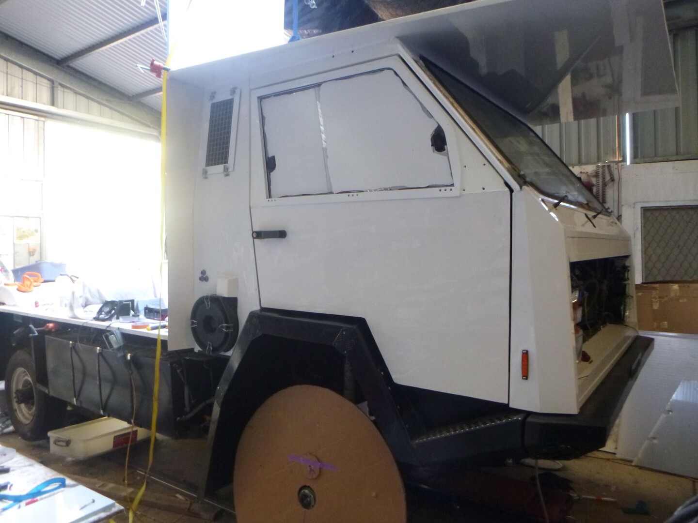 EG: quality insulation, widening doorway, re-sheet roof for clean additions of vents / panels. There are a number of holes drilled in roof and outer walls but then heavily siliconed up by prev owners, these are