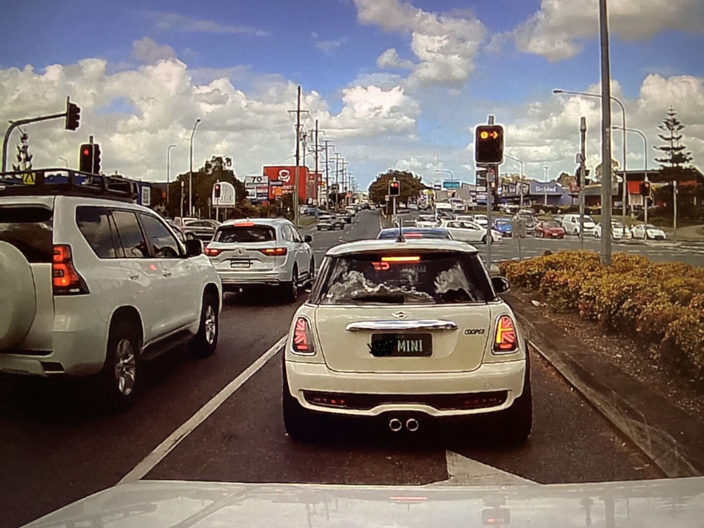 This is a Mini Cooper indicating a right turn. How did this ever get past the concept stage, let alone comply with any government's design rules? Are people really that stupid?