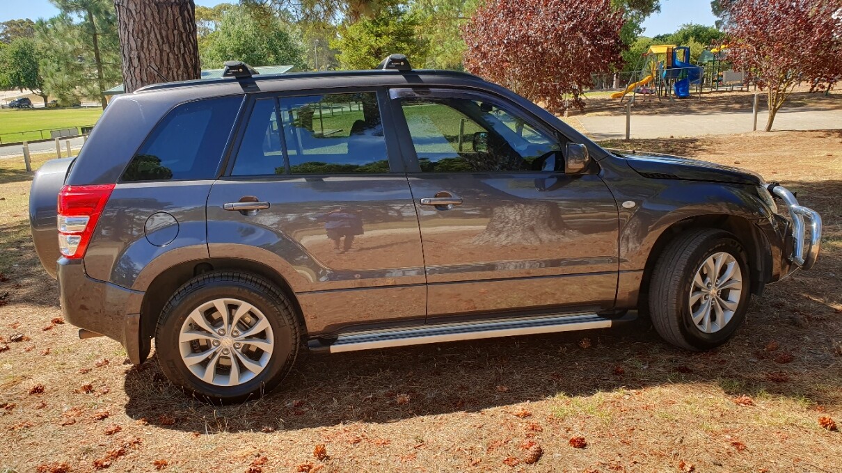 THE SUZUKI IS A 2014 GRAND VITARA SPORTS AUTO 2.4L. I HAVE OWNED IT SINCE 77Km AND NOW HAS 120Km. QUALITY UPDATED HEAD UNIT WITH REV CAM, PARK SENSORS, FRONT AND REAR BLACKVIEW DASH CAMS, GEN ROOF RACKS, NUDGE BAR WITH LIGHT BAR, TOWBAR. LAST OWNER DIDN'T USE 4WD AND NEITHER HAVE I. IT'S BEEN THE SHOPPING TROLLY FOR MY WIFE MOSTLY. I'VE HAD IT ON MY HOIST FOR REGULAR SERVICING. IT'S ABSOLUTELY READY TO GO ANYWHERE. BODY AND INTERIOR ARE GREAT.
