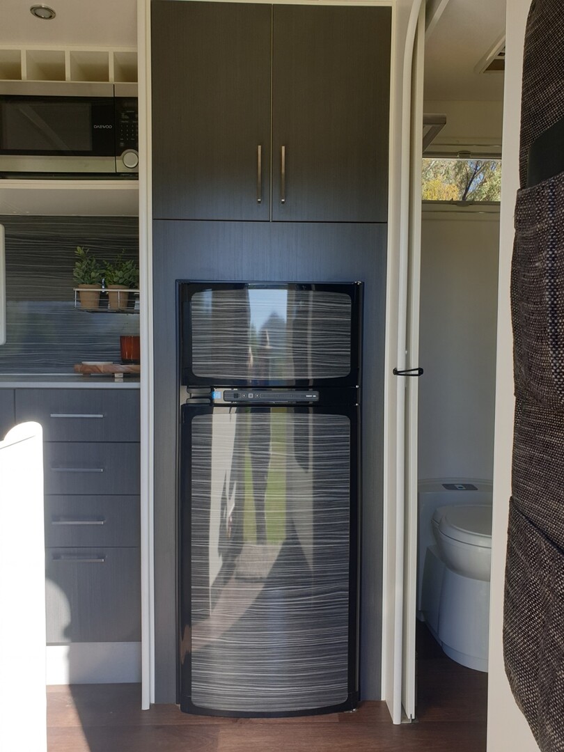 184L 3-Way Fridge/Freezer Plenty of space for food & drinks 3 x Gas Burners, 1 x Electric Hot Plate, Full Oven & Grill Cook just like at home Microwave + Internal Water Filter Extra convenience for easy meals Gas Bayonet & Picnic Table Enjoy outdoor cooking & dining under the awning