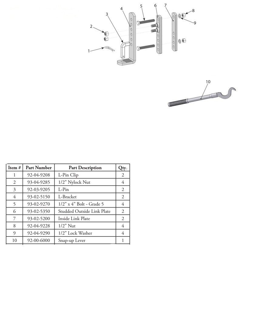 Purchased parts were L-Pin, L-Bracket & Snap Up Lever. Could have done without the lever and made my own.