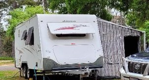 Much loved caravan, fully self sufficient. Easily towed under 2.5T fully loaded. Pull up anywhere with 300AH EV Power battery, Victron charger & inverter, solar. Includes full annexe & mesh walls, Samsung inverter fridge/freezer, Weber baby Q, portable satellite dish with satellite finder & Vast box. All hoses, annexe floor mat & pegs. Lots of other extras too numerous to list. Light truck tyres.