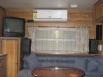 my brother bought a small split system reverse cycle unit and had that fitted (about $400), he mounted the external unit on the drawbar, ( I must caution anybody attempting this to watch the extra loading on the drawbar and to keep within the towball capacity)