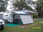 Good evening all; when purchasing our new Jayco Sterling (21 ft) last year knowing we would be in WA and now in Qld thought we wouldn't need an annexe!(! HO HO ! )so just got a long and one side shade awning. Have been on Sunshine Coast since beginning of April and obviously last few days has been a tad wet. We are planning to get a full annexe as soon as affordable. Question: has anyone got one to suit our van and can you tell us does it fit on all pads in parks? Someone who recently purchased another brand van said they got annexe made on an angle so as to fit odd side pads?? Any advice would be appreciated, Cheers,