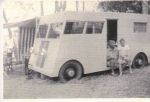 This is my Grandfathers' home-made Campervan. Sometime in the very early '50s. As I said before, he and Nanna used to go everywhere in it. Pop's sitting in the doorway, with one of my cousins. Cheers, xina.