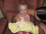 For the girls I will attach a photo as I know we like that sort of thing. This is of our 2 gorgeous grandaughters. Annaliese was very proud to meet her new cousin.