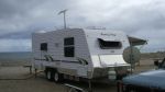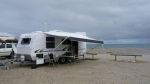 We headed off Friday afternoon for rapid bay with the new van and car. Anybody who knows the road to cape jervis will appreciate it is a challenging trip with lots of windy steep hills. I was a little bit disappointed in the way the new tug handled the conditions but thought maybes i was driving a little cautiously so on the way home drove a bit more aggressively and the tug performed heaps better. very happy with the van, a few little things I need to change but that is to be expected. the camp site at rapid bay as expected was very busy but surprisingly quite. Weather was a bit dodgy saturday morning but then cleard up and was very pleasant thereafter. have attached a few pictures of the van at the camp ground.