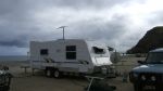 We headed off Friday afternoon for rapid bay with the new van and car. Anybody who knows the road to cape jervis will appreciate it is a challenging trip with lots of windy steep hills. I was a little bit disappointed in the way the new tug handled the conditions but thought maybes i was driving a little cautiously so on the way home drove a bit more aggressively and the tug performed heaps better. very happy with the van, a few little things I need to change but that is to be expected. the camp site at rapid bay as expected was very busy but surprisingly quite. Weather was a bit dodgy saturday morning but then cleard up and was very pleasant thereafter. have attached a few pictures of the van at the camp ground.