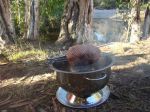 this is the basics for short trips, when going for extended travel we take "squeaky" our 5 X 3 camping trailer which has full cooking facilities as well as fuel. large gas bottle and extra water plus a fully operational kitchen, we can fill it with firewood on the way, inside is all cooking equipment as well including a sandwich cooker and Cobb and furphy camp oven