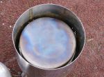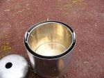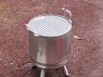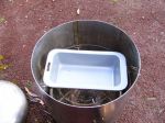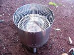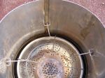 Built another removable grate for the top and hung it on four S/S butchers "S" hooks so it sits inside the fire box and takes my S/S bucket of water for a warm shower