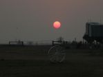 Red sun through a smokey sky in Roma..