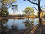 There are roadworks in the town which changes the directions shown in Camps 6. To get to the free camp when entering from the east (from Alpha) as you go over the railway crossing, turn left at the first street (not following the highway into town). Then just follow this road around to the right and down to the free-camp.