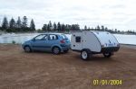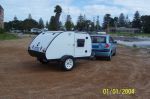 The Teardrop passed its roadworthy and was registered last week. We have a Falcon but did the test run with a 1.4 litre Getz which towed it no trouble at all. Sat on a steady 80kph with a few hills in the mix as well.