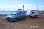 The Teardrop passed its roadworthy and was registered last week. We have a Falcon but did the test run with a 1.4 litre Getz which towed it no trouble at all. Sat on a steady 80kph with a few hills in the mix as well.