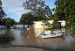 The flooded Burnett River swamped half of the Finemore caravan park in Bundaberg. The speed of the flowing river was incredible.