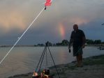 CG I was actually taking photos of the rainbow, they had been there for a while, ended up with two. Michael decided to crouch down in front of it to make it look like it was coming out of his head. Will have to go look for the others.
