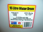 It is 3/4 inch thread(20mm) and I got it in the irrigation section of Bunnings and the clamp in the garden hose and fittings section. I found that the thread fitted into the tap thread of the container. The reason for the 15ltr size is that the larger ones don't fit under the camper and the 15 ltr didn't have to be cut down.