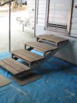 Hi, i have read all the comments on the steps most of which are quite good, but none would be of any use to me and i can't be the only one with leg dramas, weight dramas, etc etc. I am one of the lucky ones as my hubby is very handy with his hands and has made me what i reckon is the best set of steps. They have a removeable hand rail which i can't do without, the steps are wooden on a metal frame which hooks onto the bar that the original steps works off. It doesn't matter if you have to jack the up or let down a bit the angle will still work, will try to put some photos on.