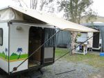 I had one made for my rear door caravan,I tried the ones from ARB and 4WD shops etc.They wre too short .Look at Marg's (happywanders) avatar and you will see my van there in the background.Cost about $550 with walls.