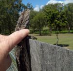 He/she made no attempt to move Beth. In fact if you look closely he has his eyes half closed like he is enjoying it a lot. He actually stayed there for half the day. Was on the back fence where grandkids lived in Bundaberg before moving here.