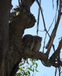 A pair of tawny frogmouth owls cuddle up together.