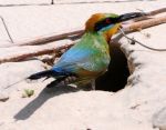 Rainbow Bee Eater building a nest on the beach at Inskip Point QLD