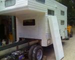 She's an old Millard Motor Home which was originally on a Mazda E200 petrol chassis, which alas was not very fuel efficient. Decided to change over to a Mazda T3500 deisel chassis. After obtaining electrical, gas and engineers certificates and completing new registration and insurance, she gaves us a dream run up the Stuart Highway.