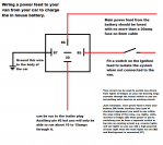I've fit at least 50 of these systems and I appologise about the diagrahm, it was right off the top of my head and I should have checked a diagrahm to get it right and specified a NO or NC (normally open/closed) relay and 40a at least which is about the best you can get in the standard automotive relays but you can go up to 100, 200, 250amp relays if you want but your only charging a battery and in most cases it won't try and draw more than 10 to 20amps to charge it anyway.