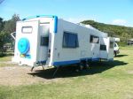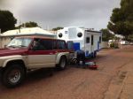 Hi everyone, well finally made it back to Kalgoorlie with our new home. bit of a nightmare journey, as you can see from the pic, the front end of the Patrol is up in the air and the front of the van is almost touching the ground!! Didn't realise our tow ball was set too low for this monster of a van! Nothing we could do about it till we get the tow ball lifted. Just took it nice and easy. Had two nights of free camping along the Eyre Highway and met some lovely people. Can't wait to get on the road again.