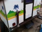 G'Day, I don't want to scare you, but it might be worth reading Collyn RIVERS on 'pendulum effect'.  This is when extra weight is added to the front or rear of a caravan and that weight increases it's mass the further fore or aft it is.   It is more prevalent to vans over 16 feet but still has a serious bearing on smaller vans too.   You can read many of his articles on line by googling Collyn Rivers articles.   For what it's worth.