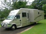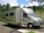 The brand is Paradise Independance. Total length is 8.7 mtrs and opens up to aprox 4.4 mtrs wide (two 900mm deep slides full length drivers side and up to the side door passengers side) built on an Iveco 65 series truck. Lots of solar 6x130w, 660 Ah batteries, 3kva Diesel Generator, 3000w Victron inverta charger system, Auto leveling legs and lots more stuff. Had only 1000k on it and never been used (was built in 2009) needed some finishing off which we had just completed prior to the breakin. so far we are very happy with it.