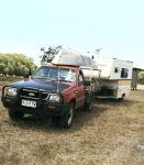 Stopped off at Bowen to see the uncle and had a nice muddie for lunch. I must admit it went down well with cleansing ale. Filled up at Proserpine for $1,49 a ltr, and worked out that i was doing 7.58 klms to the ltr at between 80 and 90 klms per hr, which is about what I expected. Now at Camp Kanga, at Peter Faust dam. Powered site for $22 a night.Will have ago at the Barras tmrow morning, after seeing the grand final. Tv and phone reception, is reasonable.Might have the other crab for tea, just for something different.See Ya , soon, Bill