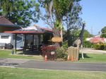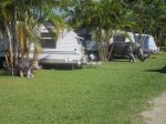 We have recently stayed at this lovely little park. It is very clean with nice amenities, grassed sites with slabs. Cost is $28 per powered site (cash). A lot of pride is taken in the upkeep and appearance. There are animal figurines scattered around. Happy hour is every evening, morning and afternoon is also at "The Meeting Place" where occasionaly a movie is also played on a large outside screen with everyone bringing their own chairs, much fun is had as many comments are made during the course of the evening. There are no bouncing pillows, swimming pools or tennis courts just a nice simple clean park where residents make their own fun. I have attached a few pics of the park.