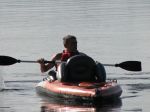 We have just got home after paddling around our local lake in my inflatable kayak. Its a sevylor quickpac k1. I bought it last year at BCF for 150 dollars. I love it and could easily keep up with hub by in a solid kayak. The advantage is that it weighs a lot less than the solid kayak and folds up into its own backpack in the back of the car.