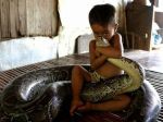 That little kids seems to be flirting with animal instincts, a wonder the parents allow it.