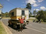 G'day Bill. I have a similar rig, an old Freeway and a '94 Courier flat bed ute. When I read your first post with pics of the rig, I wanted to ask you about the truck's suspension. Has it been modified? You said the trip home (after buying it) was "a breeze". Is the weight of the camper a problem for the Courier springs? How was the handlling on corners? I also have tie downs like yours (turnbuckles) and was wondering if they hold the camper steady on the tray. No lateral sliding or movement? As to being top heavy, as another forum member suggested, mine has two storage boxes on either side of the floor area, plus an extra full-width storage box underneath which makes it about a foot taller than yours. I figure it should be okay provided all the heavy stuff is loaded below the waistline. The reason I'm asking these questions is because I haven't put the camper on the ute yet. Still getting a few things done to the ute. Gary