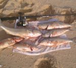 Took another look at those fish, I wish I could have got on to them.  Seriously, what line, sinker and bait?  Paternoster rig?  Two hooks or one?  Did you use any artificials.  I would have used two hook paternoster rig with stinky pilchards or rancid bluebait with plenty of scraps dropped at my feet.  Would have bled them, taken them home and done them on the bbq with a nice ginger, soy, garlic and anything else!