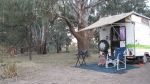 I had to replace the springs and tyres pretty much straight away, and had a reno inside to suit my purposes. It came with an annex and awning, a TV antenna, and a microwave. (Which I gave away.) Oh and it had no in house battery. As I can't do poles and pegs, I don't use the annex and my b-i-l modified the poles so I can still put up the awning by slotting onto the back of the van. (As seen in this photo.)